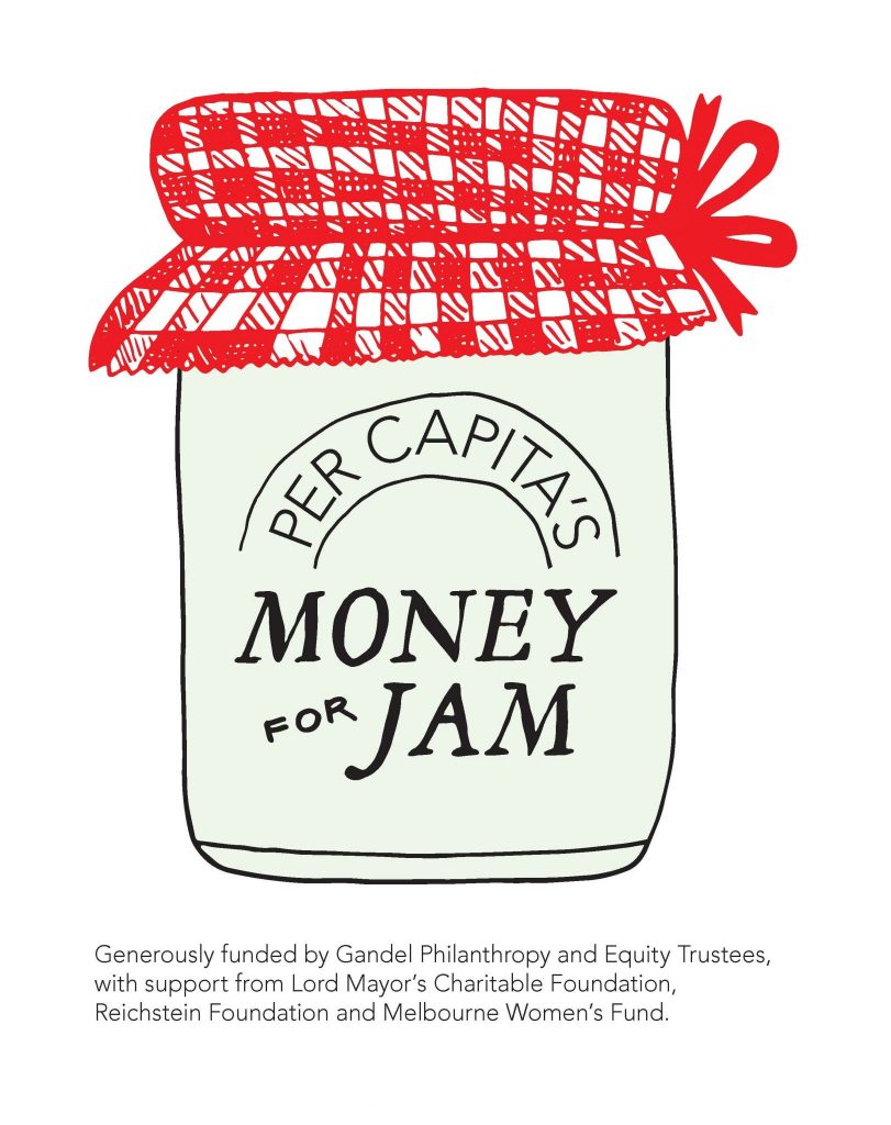 The Money For Jam pilot project is generously funded by Gandel Foundation and Equity Trustees through the A & M Osborn Charitable Trust, and the J. R. Hartley Charitable Trust. The pilot is also kindly supported by the Lord Mayor’s Charitable Foundation, the Reichstein Foundation and the Melbourne Women’s Fund.