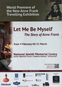 A poster from 2014, promoting the Anne Frank exhibition in Canberra, ACT.
