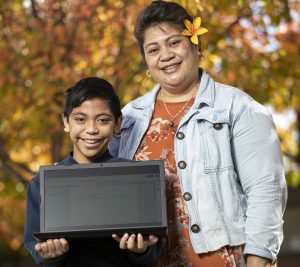 Young Lee Ausage (pictured with his mum), grade 6 student from the Dandenong South Primary School was all smiles when he received a laptop from